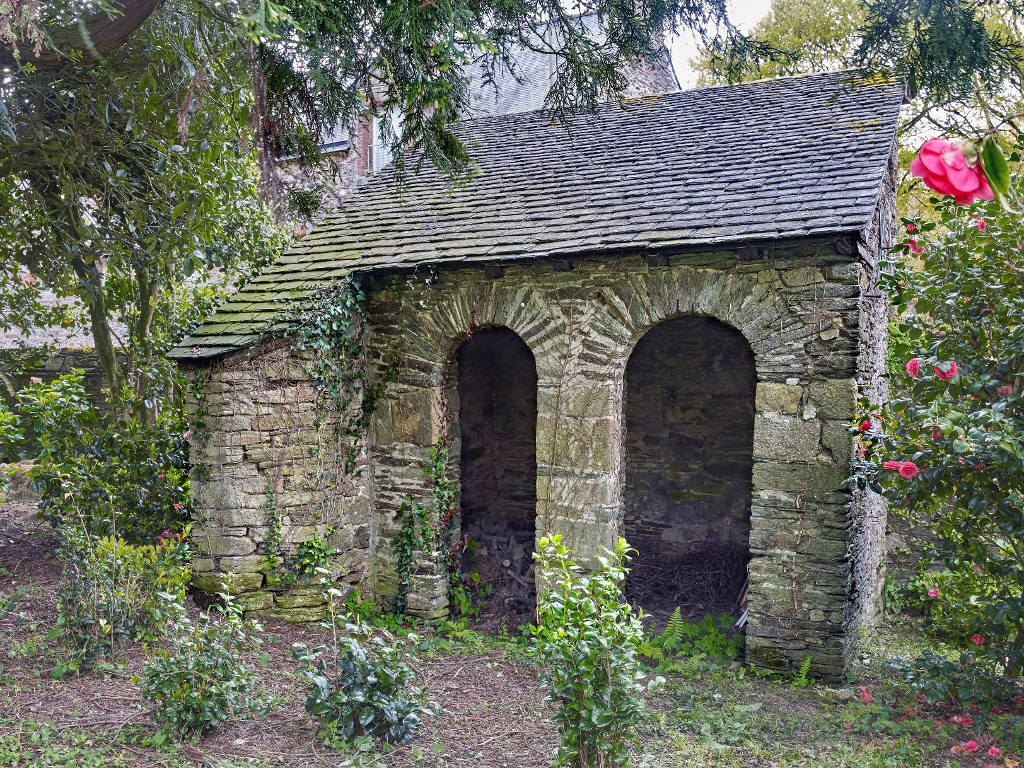 Bûcher et latrines adossés au mur de la cour avec son contrefort pour en protéger l'angle. Vue nord-ouestImmatriculation