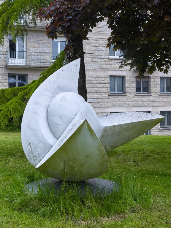 Viliano Tarabella : "Envol", sculpture en marbre, vers 1975-1976. Vue de d'ensemble prise du sud.Immatriculation