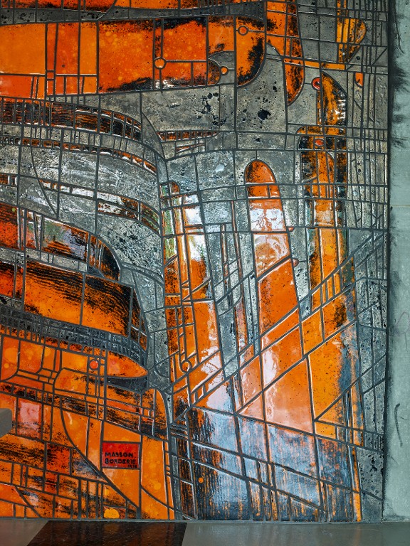 André Masson et André Borderie, céramique murale, 1976 (déplacée en 2009-2010). Détail.Immatriculation