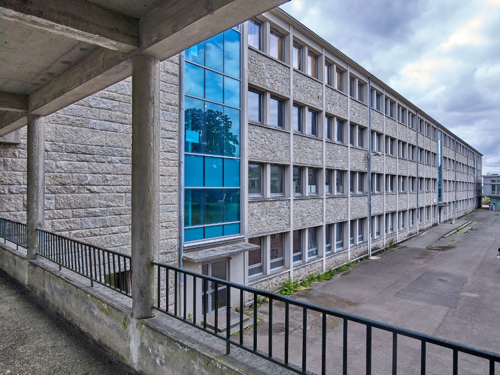 Façade ouest de l'externat, prise depuis le premier étage de la galerie couverte le reliant à l'administration.Immatriculation