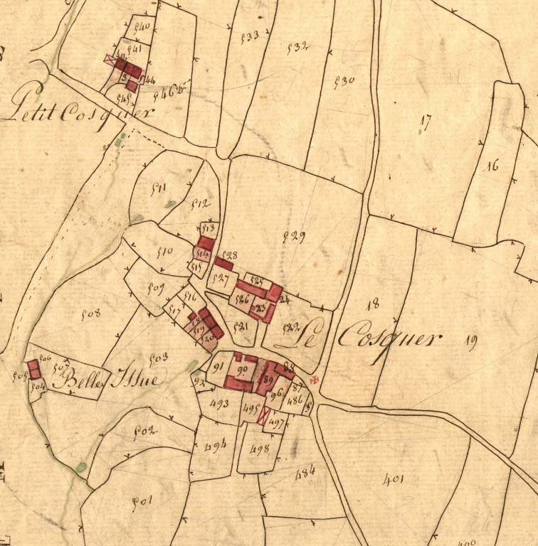Le Cosquer en 1828. Extrait du cadastre ancien, section B1 (Archives départementales des Côtes-d'Armor, 3 P 265)Immatriculation