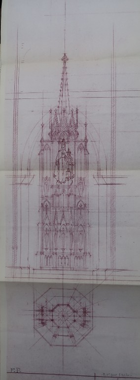 Projet de simplification du trône monumental de la statue de Notre-Dame d'Espérance, dessin non signé, après 1957