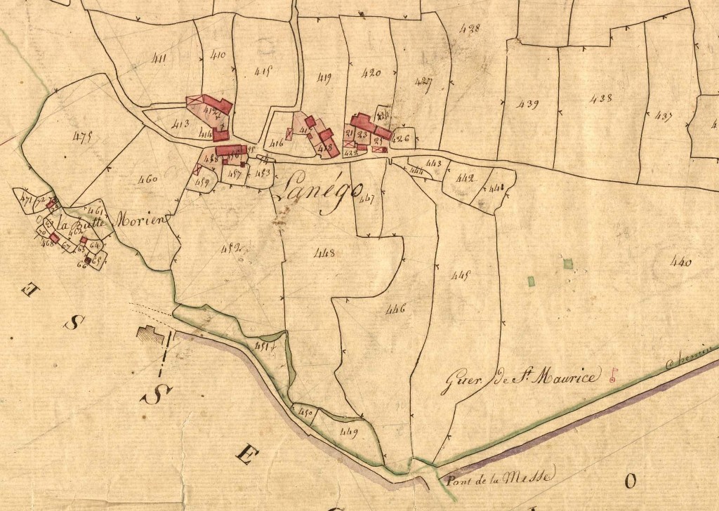 Pont de la Messe en 1828. Extrait du cadastre ancien, section B1 (Archives départementales des Côtes d'Armor, série 3 P 265)Immatriculation