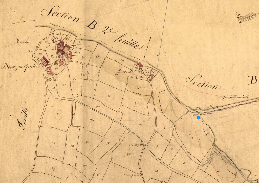Pont de la Messe en 1828 avec la localisation du lavoir. Extrait du cadastre ancien, section C1 (Archives départementales des Côtes-d'Armor, 3 P 265)Immatriculation