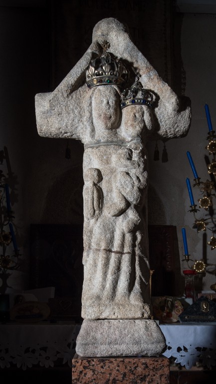 Statue : Vierge à l'Enfant en croix de calvaire dite Notre-dame de Nazareth, église Notre-Dame-de-Nazareth (Plancoët),