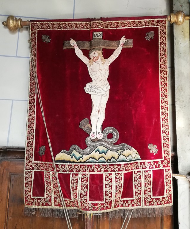 Bannière : saint Laurent, Christ en Croix, église Saint-Laurent (Langrolay-sur-Rance),