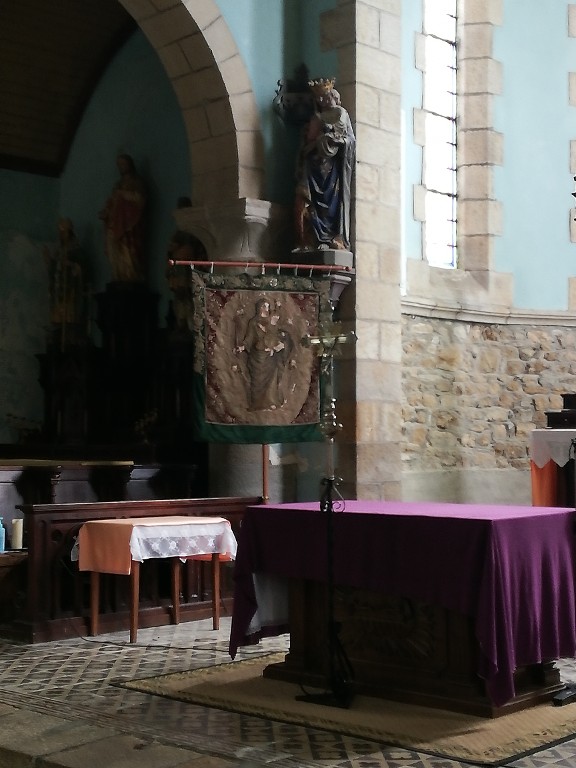 Bannière : Vierge à l'Enfant, église Notre-Dame-de-la-Martyre (Le Merzer),