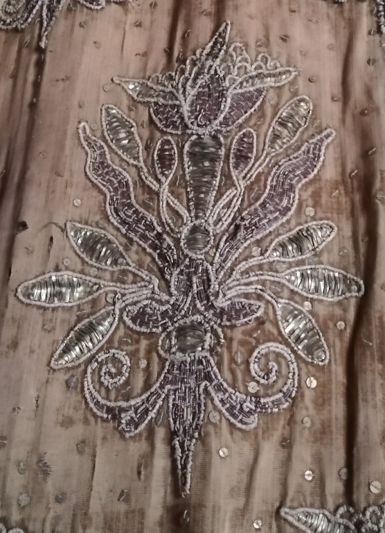 Détail : fleuron brodé sur velours - face saint MaudezImmatriculation