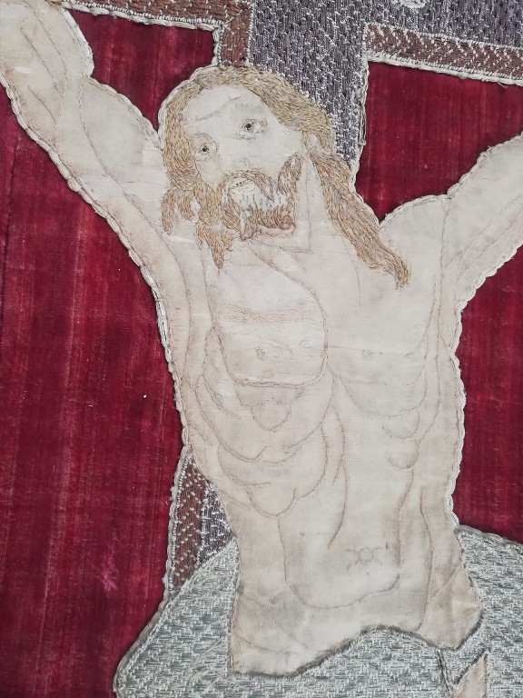 Bannière : sainte Agnès, Crucifixion, église paroissiale Sainte-Agnès (Tréfumel),