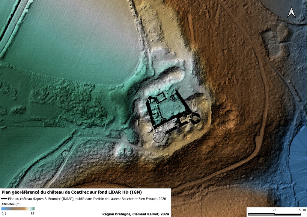 Plan du château de Coatfrec sur fond Lidar HD de l'Institut national de l'information géographique et forestière (plan du château d'après Frédéric Boumier, Institut national de recherches archéologiques préventives)Immatriculation