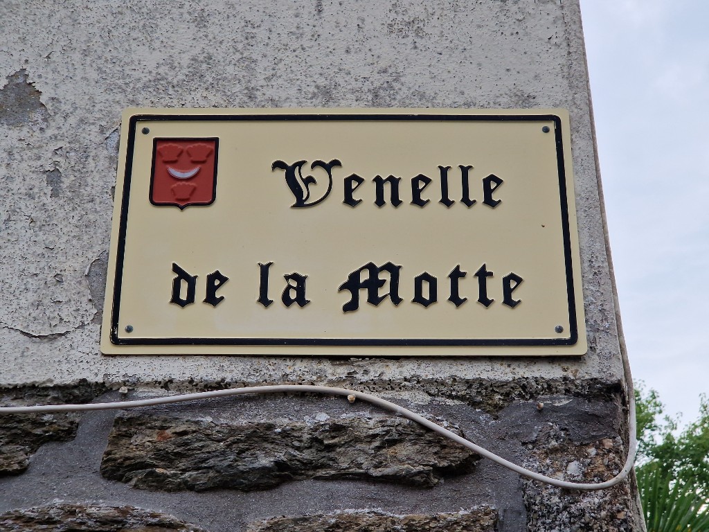 Vue de la plaque de rue indiquant la Venelle de la motte à proximité du châteauImmatriculation
