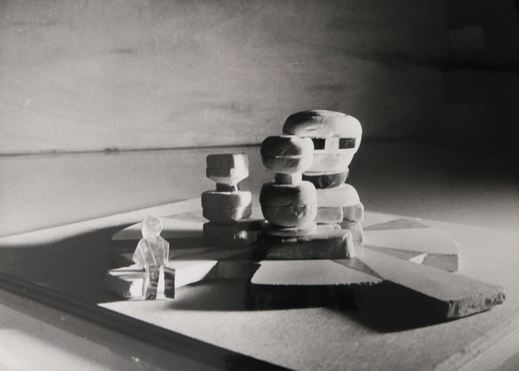 Bernard Alleaume et Yvette Vincent-Alleaume : maquette du groupe sculpté 'Les bonshommes', 1974.Immatriculation
