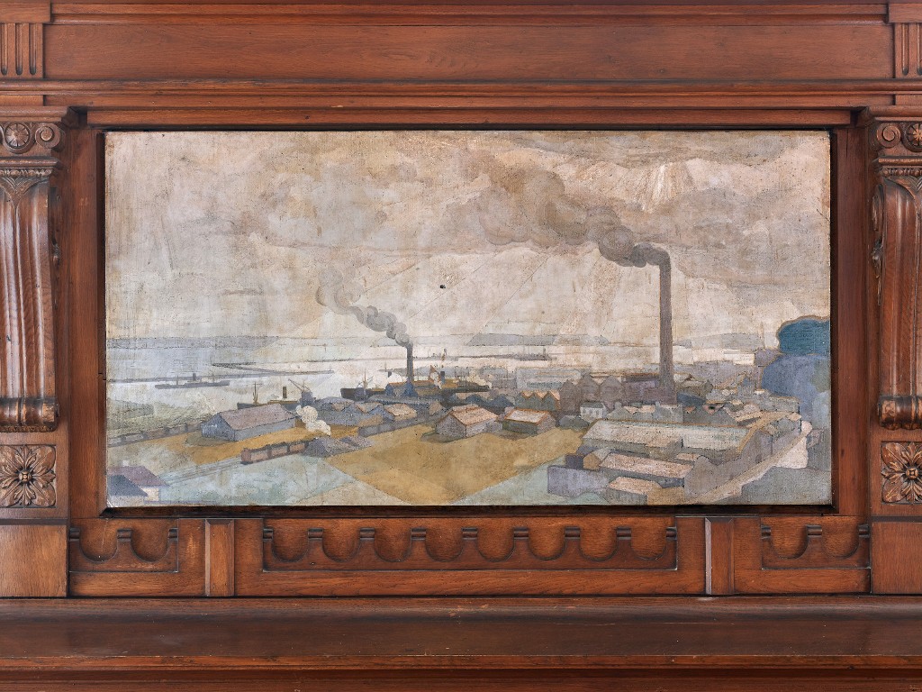 Peinture sur toile représentant le port de commerce en 1929Immatriculation