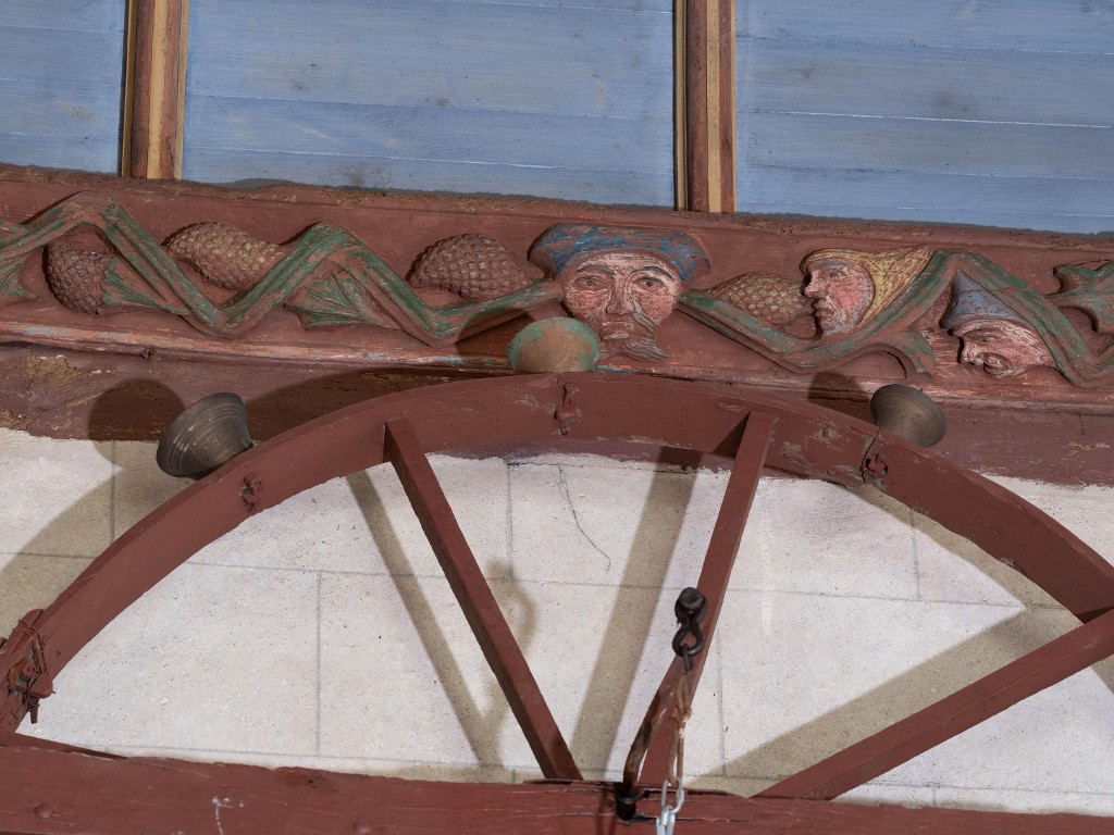 Roue à clochettes (d'applique), roue à carillons, dite roue de fortune, église Saint-Mélar (Meilars),