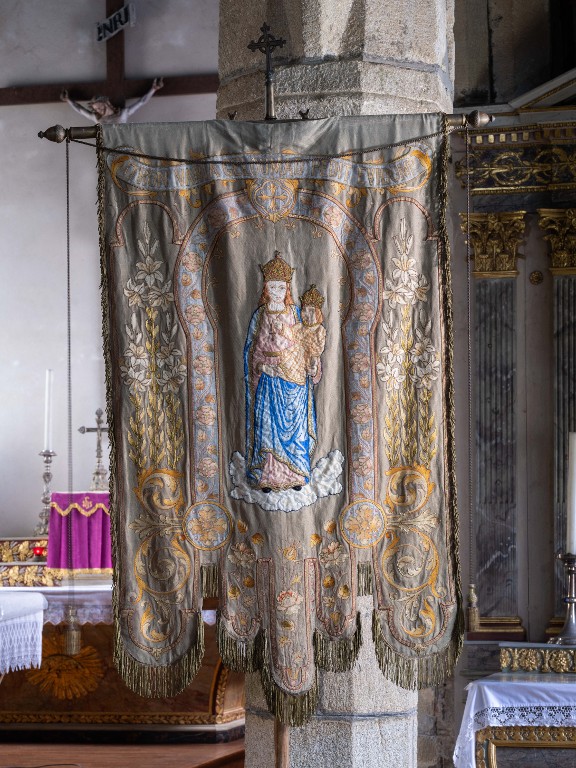 Bannière brodée d'église, Immaculée Conception et Vierge à l'enfantImmatriculation