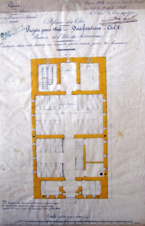 Plan du corps de garde crénelé pour 30 hommes pour la batterie de l'Ilet de Kermorvan, projet pour 1846Immatriculation