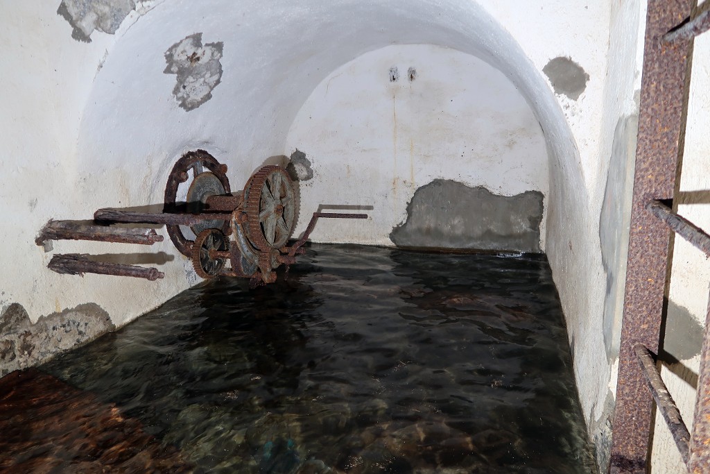 Vue de la chambre du treuil manuel à tambour du monte-chargeImmatriculation