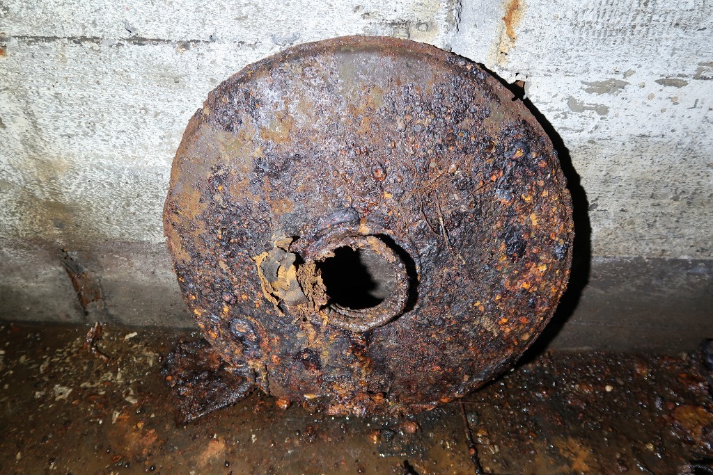 Vue intérieure : salle de garde sud. Contre le mur se trouve un filtre à charbon pour le ventilateur [disparu]Immatriculation