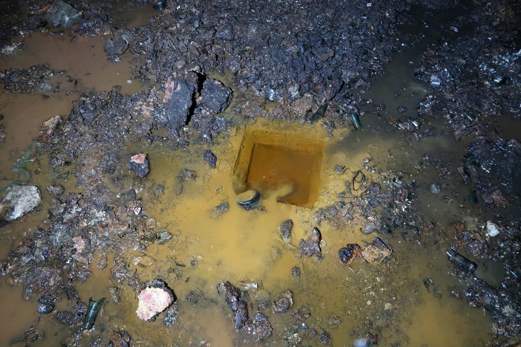 Vue intérieure : salle de garde sud. Le puisard situé au centre de la pièce présente des traces de fouilles récentesImmatriculation