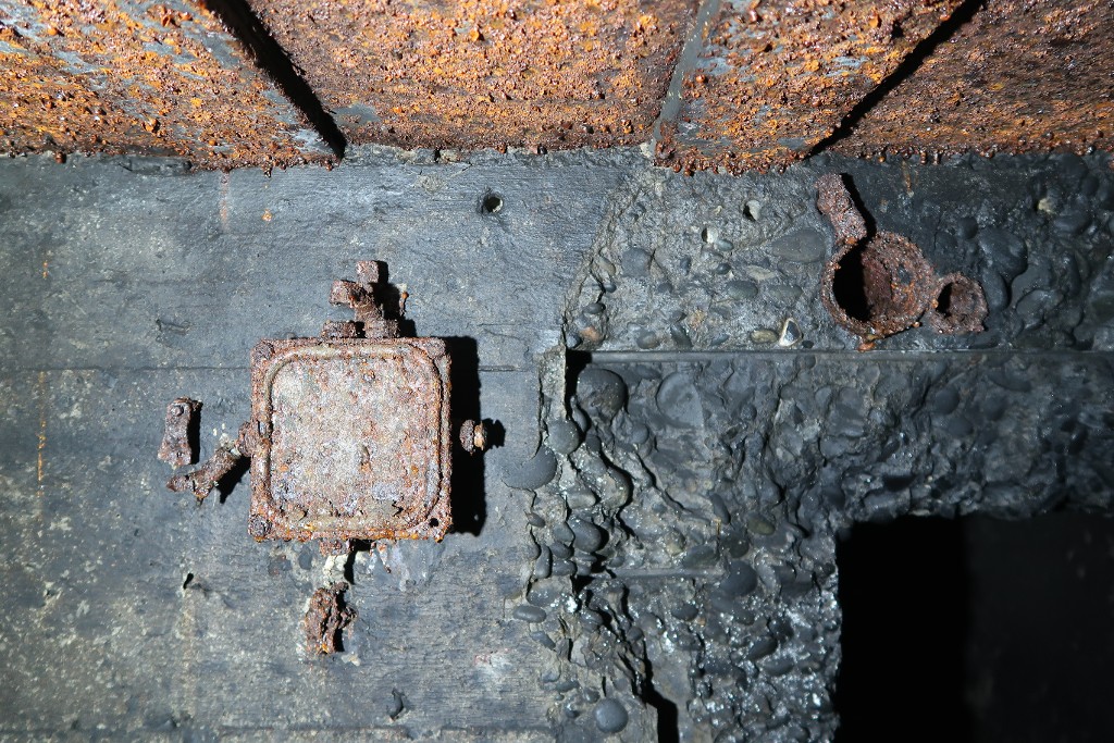 Vue intérieure : angle nord-est, détail du boîtier fixé au murImmatriculation