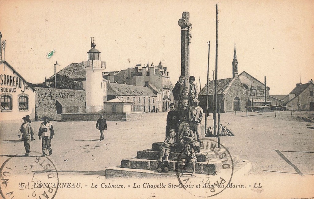 Carte postale, Concarneau, le calvaire, la chapelle Ste-Croix et abri du marin. Ed. L.L.Immatriculation