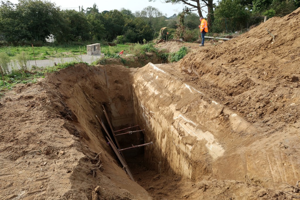 Vue de l'accès à l'entrée sud (creusé par une pelle mécanique hydraulique dans le cadre de l'opération de déminage). Deux entrées sont aménagées dans l'élévation estImmatriculation