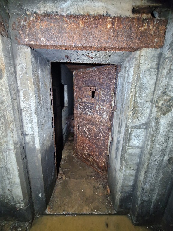Vue de la porte blindée à deux vantaux de l'entrée nord du sasImmatriculation