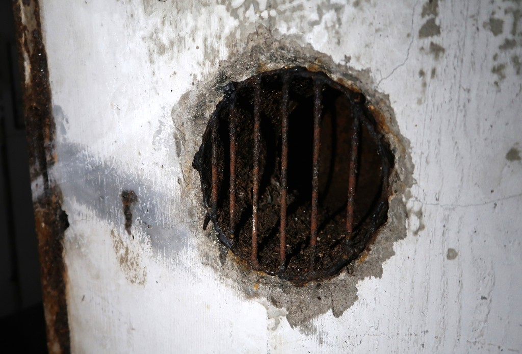 Vue du sas : tuyau avec sa grille de protectionImmatriculation