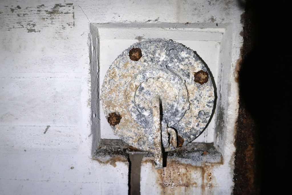 Vue intérieure : salle de garde sud, bouche de surpression à clapet à contrepoids en aluminiumImmatriculation