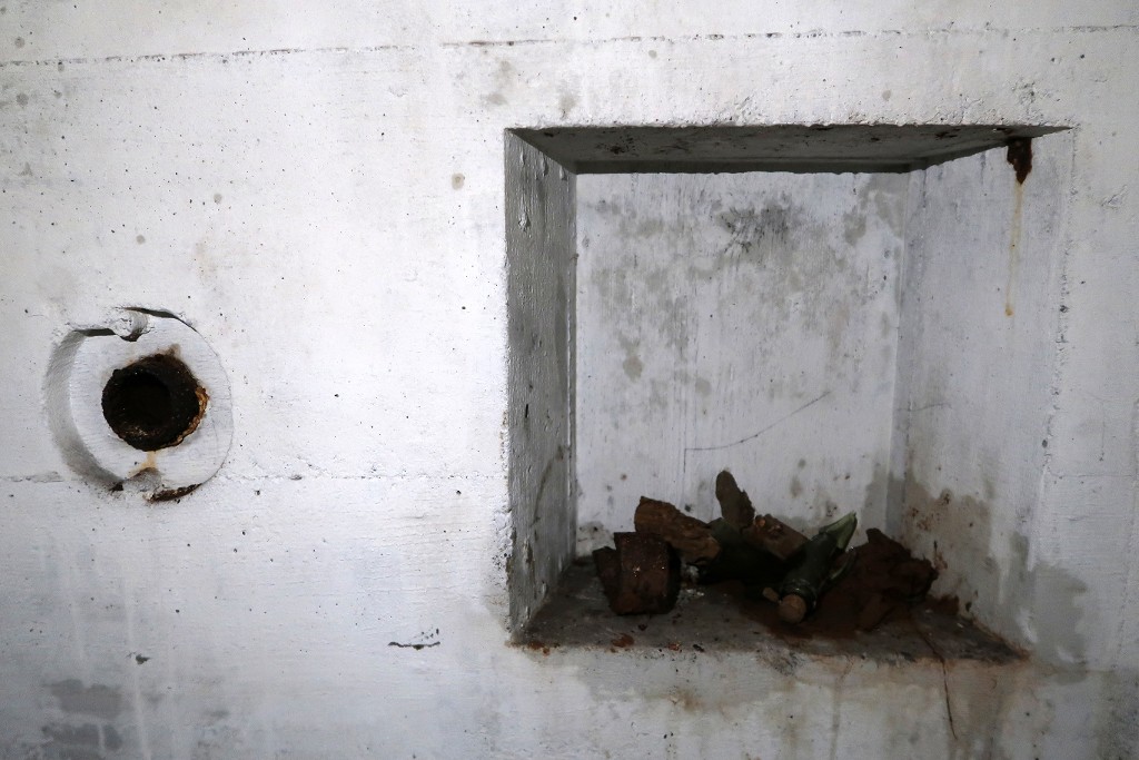 Vue intérieure : petite pièce située au nord-est, niche murale et hygiaphone (?)Immatriculation