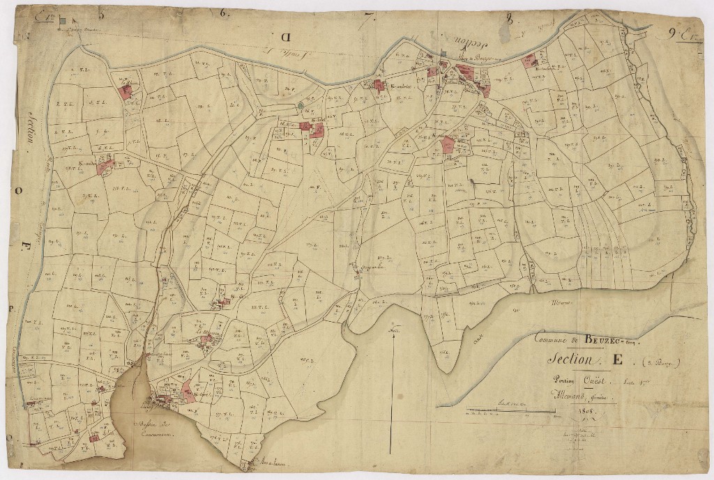 Archives départementales du Finistère, Cadastre, section E, Beuzec-Conq, 1845