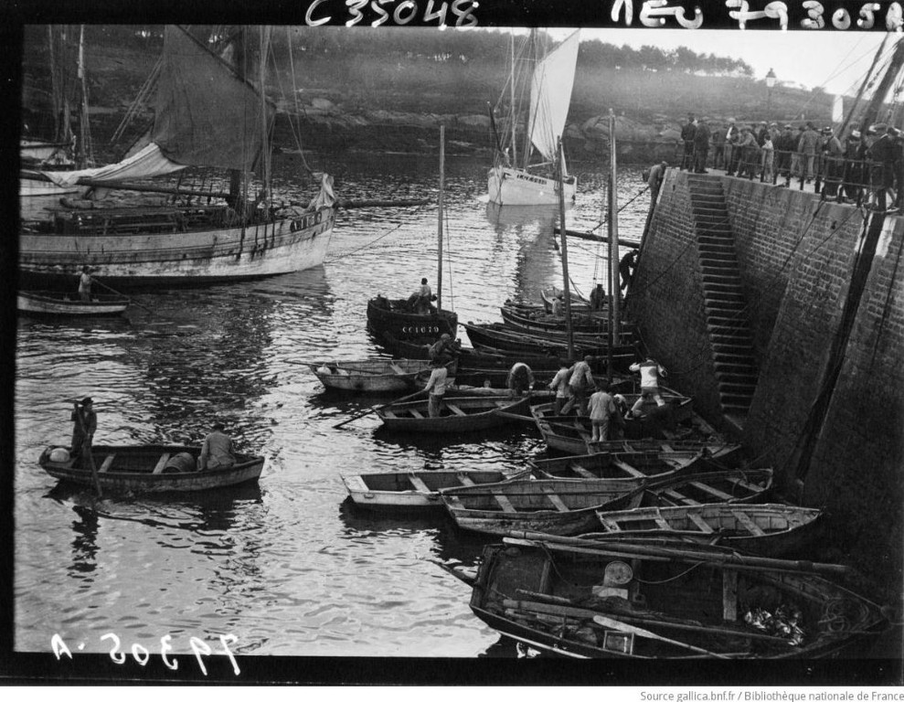 Concarneau, après la tempête de 1930 les bateaux rentrent du port : Agence Meurisse