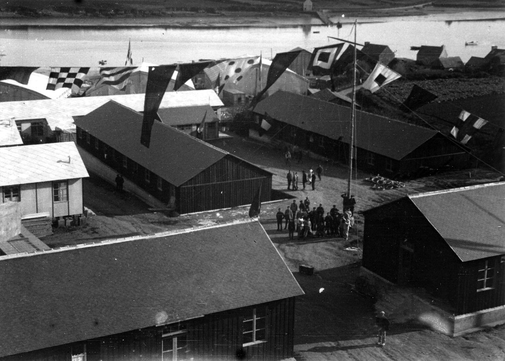 Photographie du centre prise depuis le réservoir d'eau douce le 11 novembre 1918, jour de l'Armistice (collection Daniel Dahiot - Archives départementales du Finistère, FRAD029_1NUM_007_09). Le fil de l'antenne supporte les pavillonsImmatriculation
