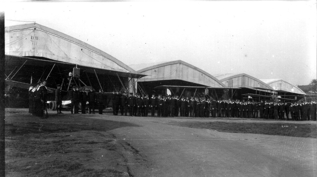 Photographie prise le 11 novembre 1918, jour de l'Armistice (collection Daniel Dahiot - Archives départementales du Finistère, FRAD029_1NUM_007_14). A gauche devant l'hydravion Tellier 200 hp, l'État Major du CAMImmatriculation