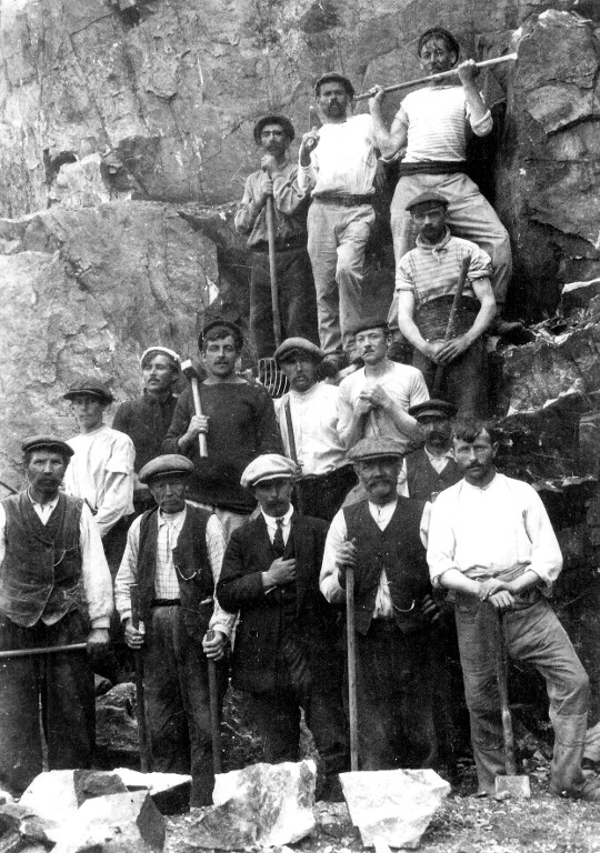 Portrait des terrassiers et marins à la carrière d'où ils ont tiré les moellons utilisés pour la construction du slipway (collection Daniel Dahiot - Archives départementales du Finistère, FRAD029_1NUM_007_67)Immatriculation