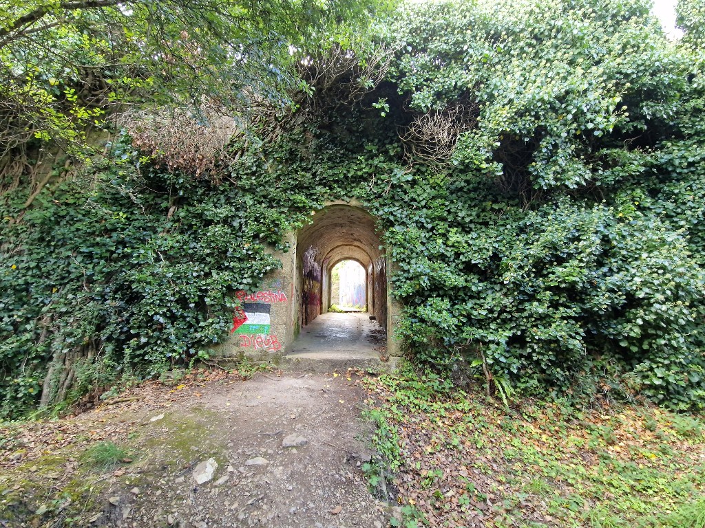 Vue de la poterne traversant la redoute depuis le fossé nord-est (état en 2024)Immatriculation