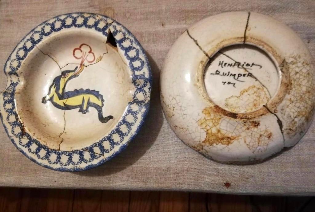 Cendrier de la faïencerie Henriot à Quimper orné en l'honneur de la Marine-Flak 805 et numéroté. Il a été trouvé à proximité du fort du Corbeau (collection particulière)Immatriculation