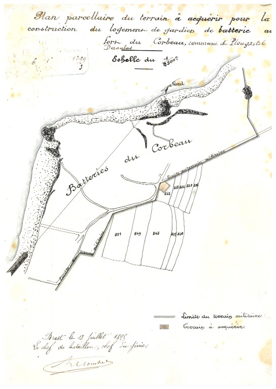 Plan parcellaire du terrain à accueillir pour la construction du logement de gardien de batterie au fort du Corbeau, 18 juillet 1895Immatriculation