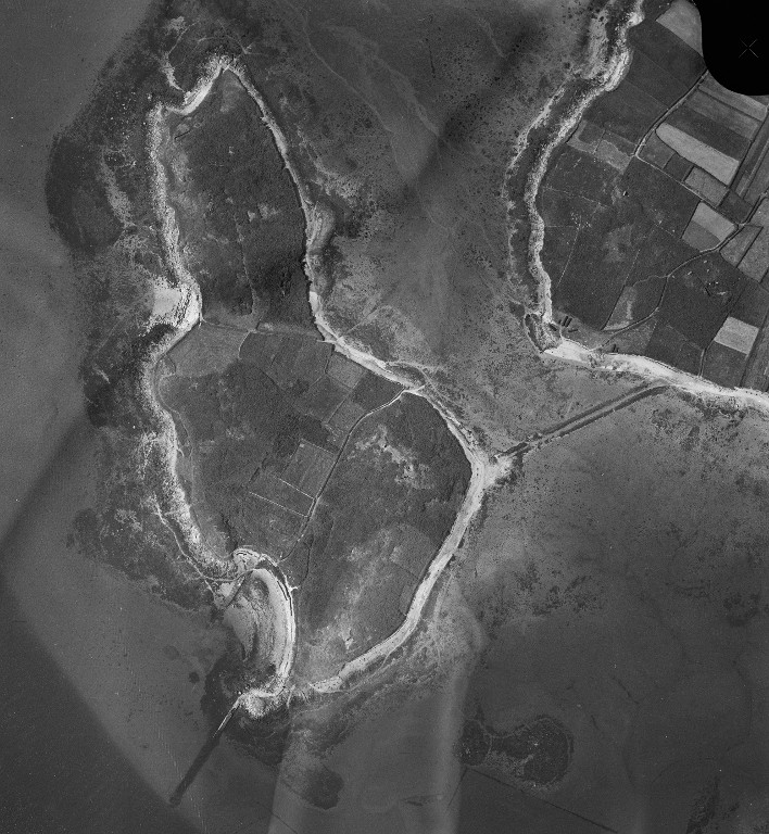 Vue aérienne verticale, 1964. Les plots sont visibles en haut de la grève sud-ouest de l'îleImmatriculation