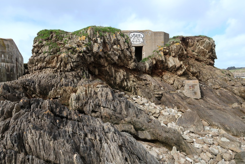 Vue générale (du côté de l'entrée du bunker vers l'est). Devant le bunker, les vestiges de la passerelle. A gauche, le bunker - abriImmatriculation