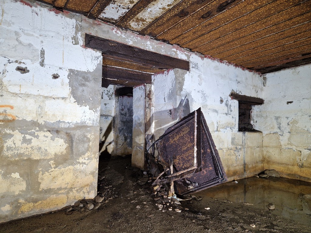 Vue intérieure : salle de garde ouest, vestiges de la porte de l'accès sud. A droite, le créneau blindée de défenseImmatriculation
