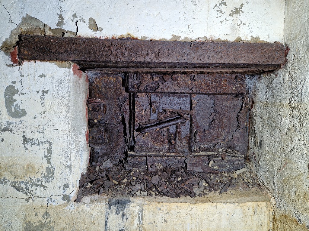 Vue intérieure : salle de garde ouest, créneau blindé défendant l'accès sudImmatriculation