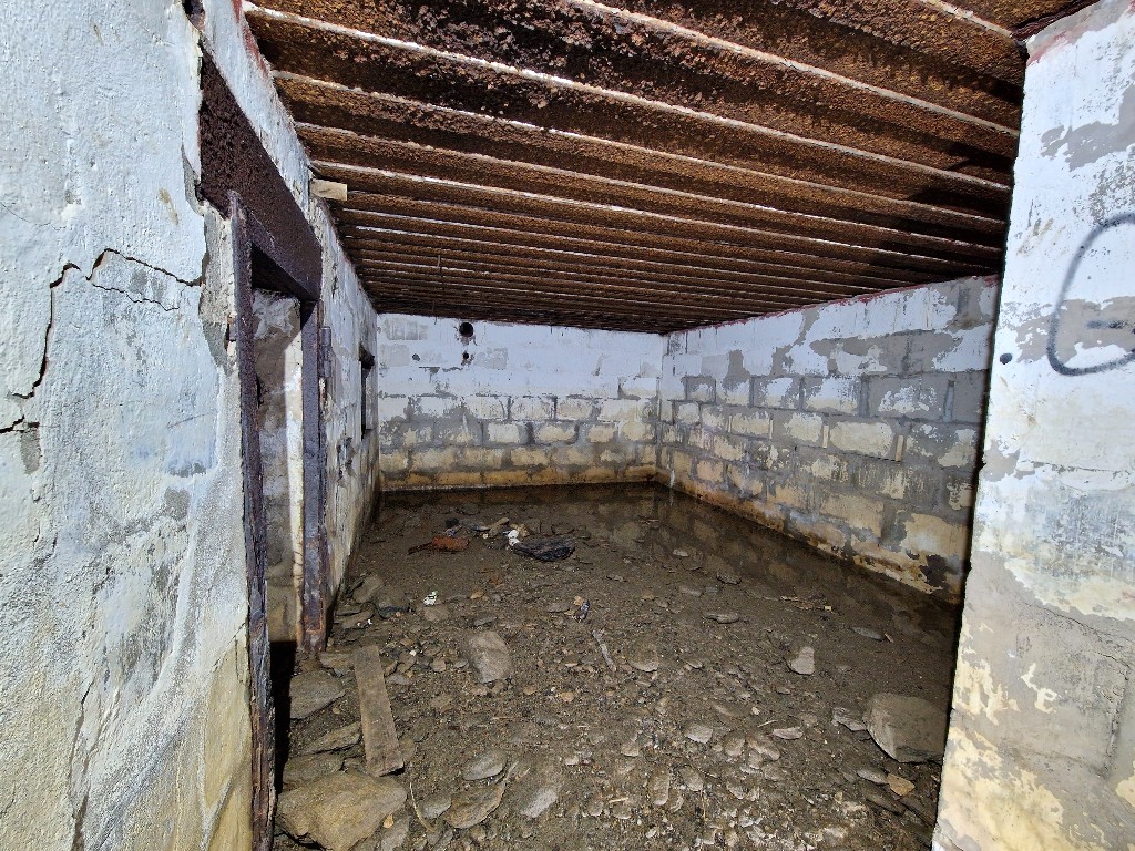 Vue intérieure : salle de garde est. Le bunker est construit avec des parpaings dans lesquels a été coulé le bétonImmatriculation