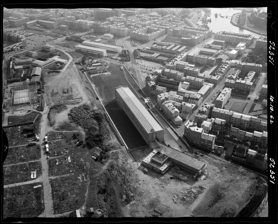 Georges Tourry, architecte. Vue aérienne prise du nord-est, le 10 octobre 1962. On aperçoit au second plan les baraques du lycée d'après-guerre.Immatriculation