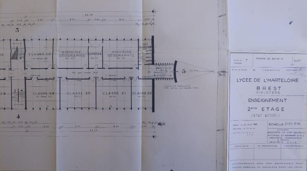 Plan du deuxième étage. Georges Tourry et Hervé Péron, architectes, 1960.Immatriculation