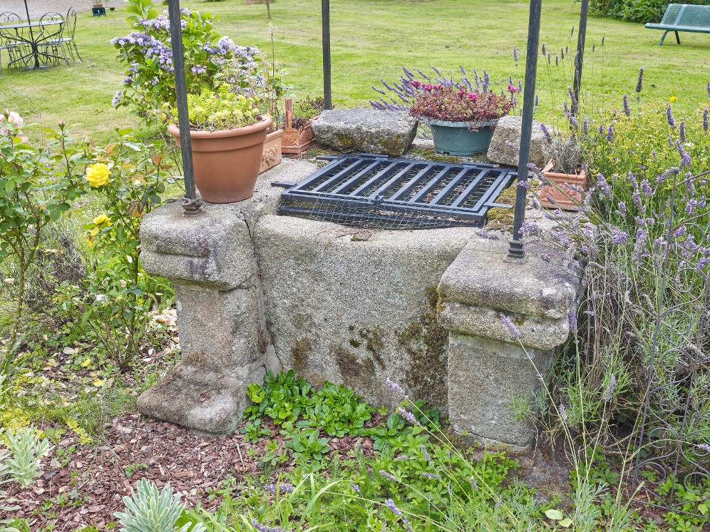 Le puits au sud du château. Détail de la base en pierre de taille de granite.Immatriculation