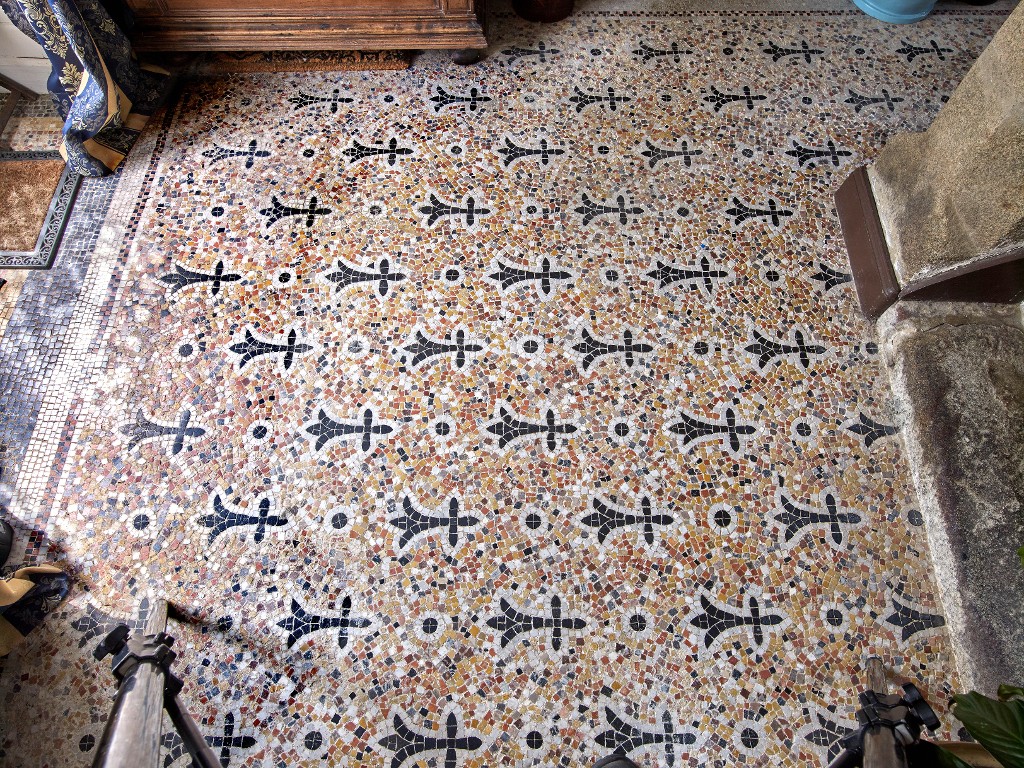 Revêtement de sol en mosaïque du hall d'entrée.Immatriculation