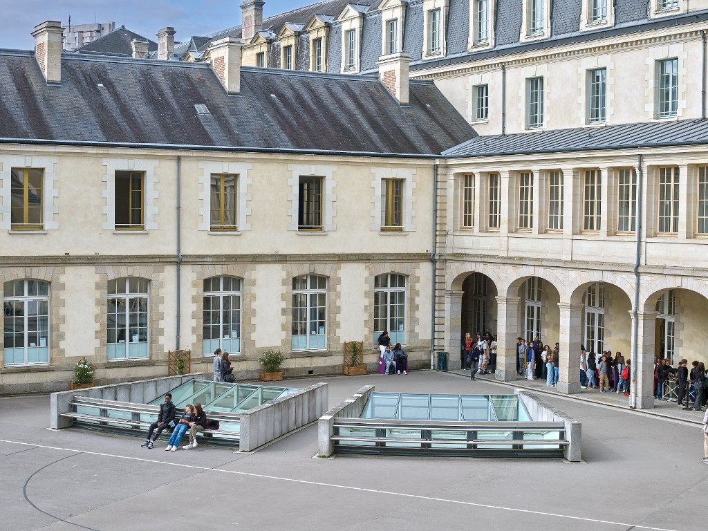 Les espaces restructurés en 1990 - 2005 du lycée et collège Emile Zola, 2, avenue Jean Janvier (Rennes),