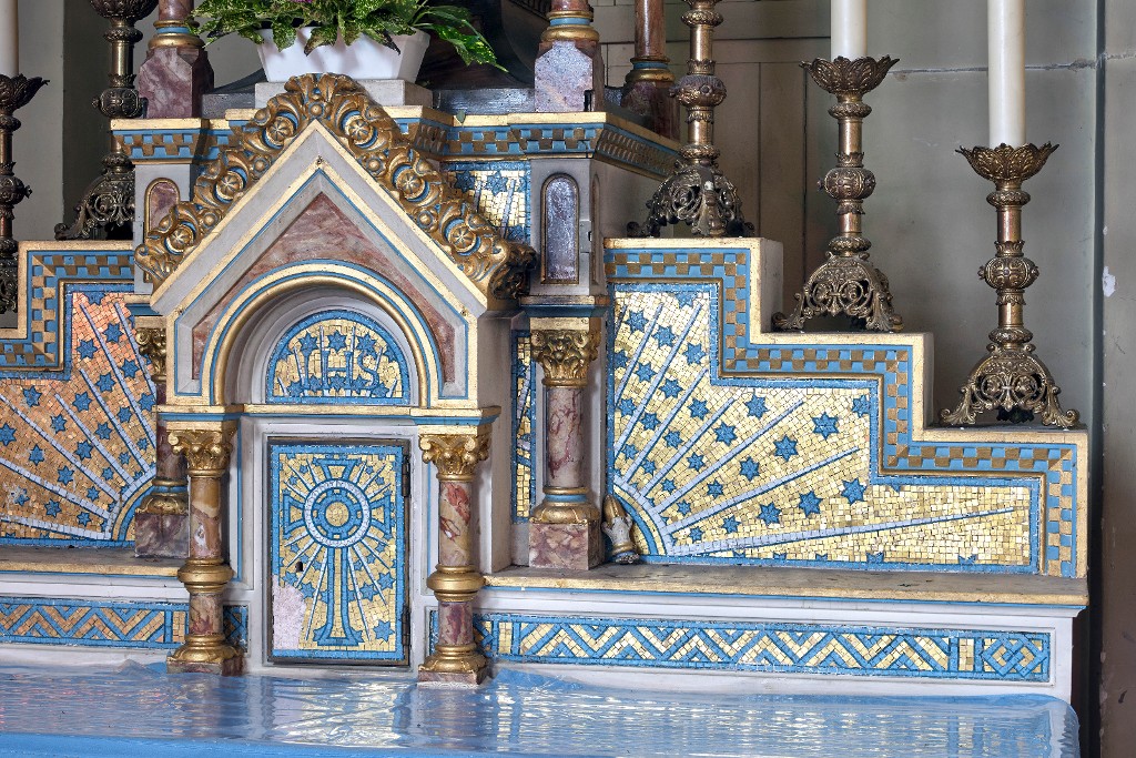 Tabernacle et retable du maître-autel, ornés d'un décor de mosaïque dû à Odorico Isidore père (1845 - 1912), daté de 1902Immatriculation