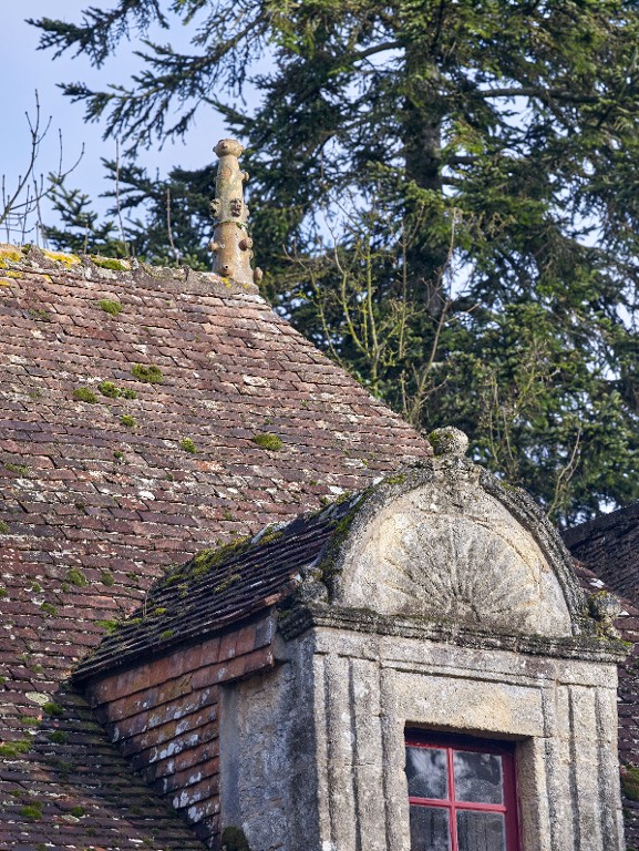 Toit en tuiles plates et épis de faîtage en terre cuiteImmatriculation